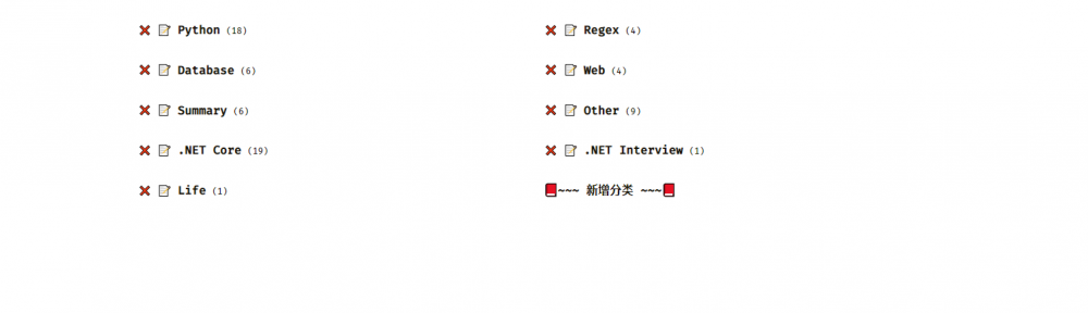在這裏我會將所有分類展示出來,新增、更新、刪除都會放在一個頁面上去完成。