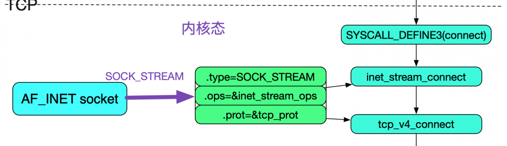 由於我們考察的是tcp的connect,其socket的內部結構如下圖所示: