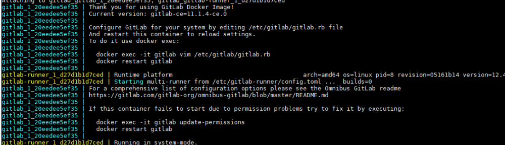 下面是運行效果,第一次運行會比較久,因為要拉取鏡像和初始化GitLab