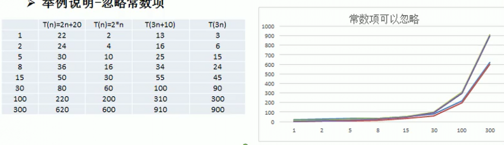 又根據時間頻度T(n)的“三個忽略”原則,我們可以知道時間複雜度是這樣得到的: