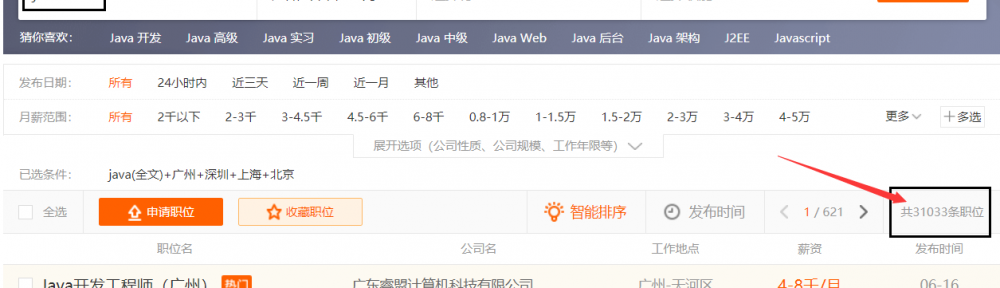 登錄前程無憂的官網,分別輸入java、C++、python、javascript、.net、C#、PHP、SQL、IOS關鍵字,城市選擇北京、上海、廣州和深圳,查詢到的招聘職位分別是31032、22842、19274、14091、6956、8018、5284、21302、6014個。(這是2020年6月查到的數據,不同時期的查詢結果略有不同)