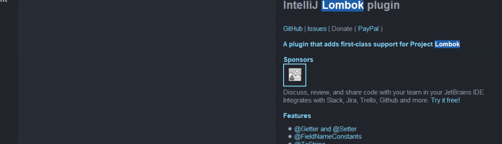 不過IDEA似乎無法識別,代碼檢查還是會報錯,所以,使用IDEA的時候還得安裝一個插件,在plugin搜索lombok,之後安裝重啟即可,如圖