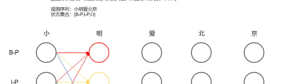 上一層對應節點的概率 * 上層對應節點到該節點的轉移概率 * 該節點的觀測概率P(明|B-P)
