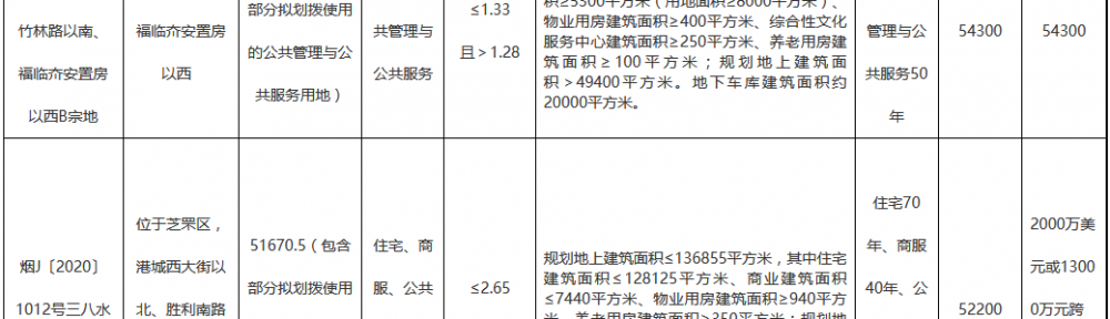中國網地產訊 12月25日,山東省煙台市集中出讓2宗商住用地,總出讓面積90320.6㎡,總起始價10.65億元。最終,2宗地塊均以底價成交。