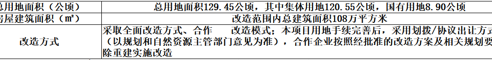 從項目片區居民情況看,葵蓬村居民2115戶,戶籍人口4136人。總用地面積129.45公頃,其中集體用地120.55公頃,國有用地8.90公頃。改造範圍內總建築面積108萬平方米。