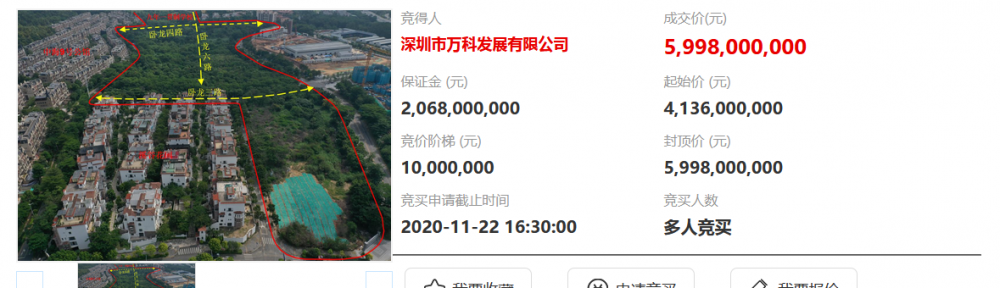 資料显示,該宗地代碼為440306006001GB00330,位於寶安區西鄉街道。出讓面積85320.53㎡,起始價41.36億元,競買保證金20.68億元,最高限價59.98億元。