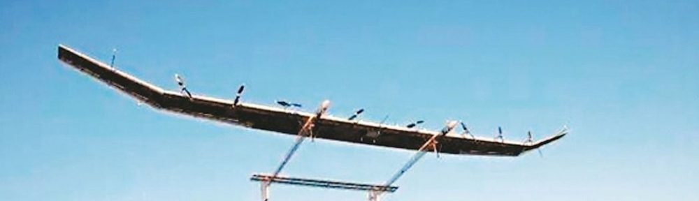 大陸首款彩虹太陽能無人機高空試飛成功,在大陸西北地區完成臨近太空、超過廿公里高空的飛行,翼展達四十五公尺、升限超過兩萬公尺,滯空時間達數十天、或數月之久。 圖/取自網路
